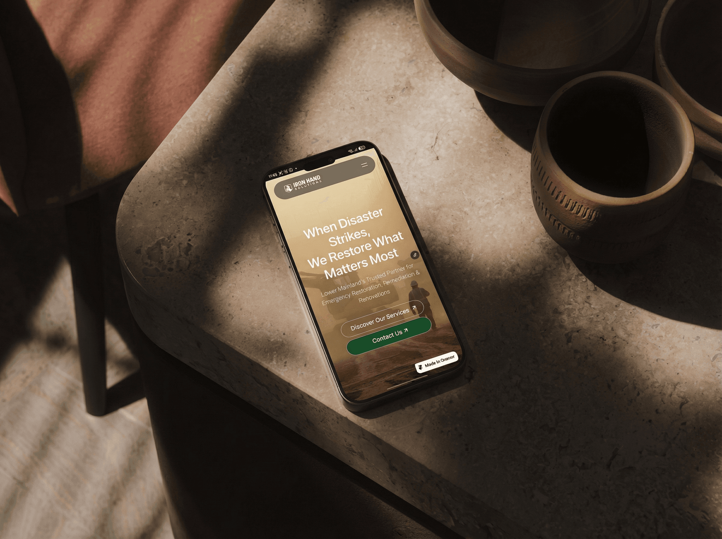 Iron Hand Solutions had minimal digital presence in a competitive emergency services market where speed and trust are critical. Their lack of a professional website and clear service communication meant they were losing emergency calls to competitors with stronger online visibility, despite offering superior restoration services and insurance expertise.